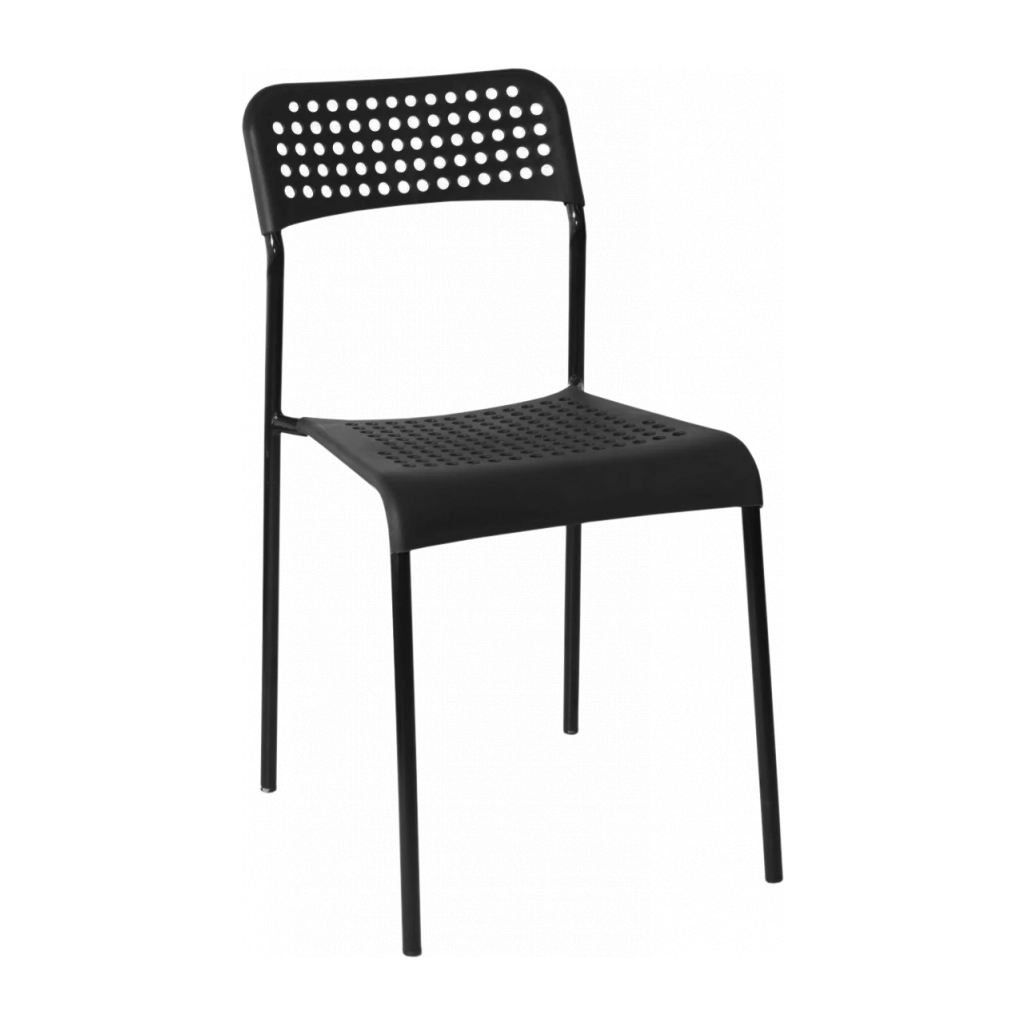 Сидіння та спинка стільця виготовлені з якісного пластику, що робить його легким, але водночас досить міцним. Квадратне сидіння надає достатньо місця для комфортного розміщення, а відкрита спинка сприяє циркуляції повітря, що особливо важливо в теплу пору року. Відсутність оббивки полегшує догляд за стільцем, роблячи його ідеальним варіантом для використання в місцях, де важлива практичність та можливі забруднення.