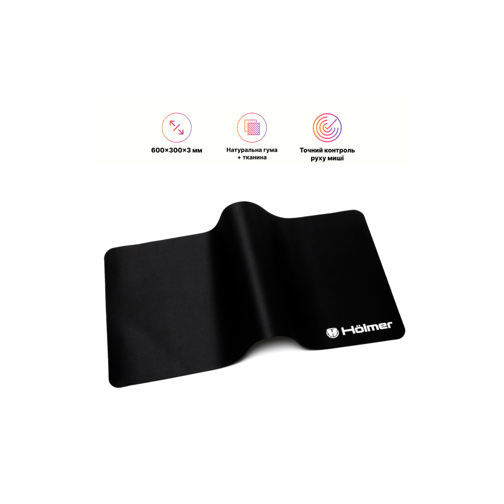 Hölmer OMP-04 — це універсальний настільний килимок (Desk Mat), який пропонує величезний простір для організації вашого робочого місця. Завдяки розміру 600 х 300 мм, він легко вміщує і клавіатуру, і мишу, забезпечуючи єдність стилю, комфорт та стабільність для обох пристроїв.