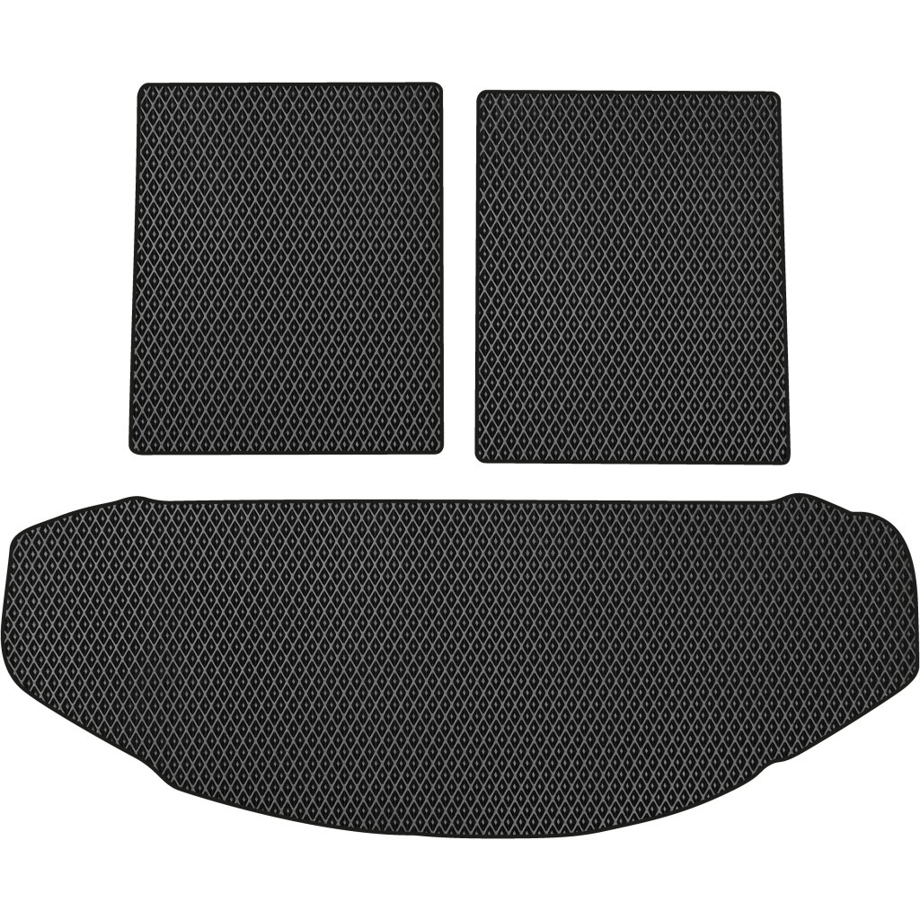 Килимок багажника з елементів EVAtech для Mazda CX-9 (TC) 2016+ 2 покоління SUV USA чорний ромб з чорним кантом. Оригінальні автомобільні килимки EVAtech з матеріалу EVA, завдяки своїй структурі, добре затримують воду, бруд і пісок. Автокилимки виконані за індивідуальними кресленнями, тому відповідають розмірам салону автомобіля, що забезпечує максимальне прилягання і покриття салону. Кожен комплект килимків оснащений штатними кріпленнями і системою липучок, створюючи додаткову фіксацію і максимальне зчеплення. Килимки легкі, тому зручно очищаються і не вимагають просушування. Килимки EVAtech з відмінними характеристиками міцності: витримують перепади температур від + 50 ° C до -50 ° C, не вступають у взаємодію з різними хімічними реагентами і стійкі до механічного впливу.