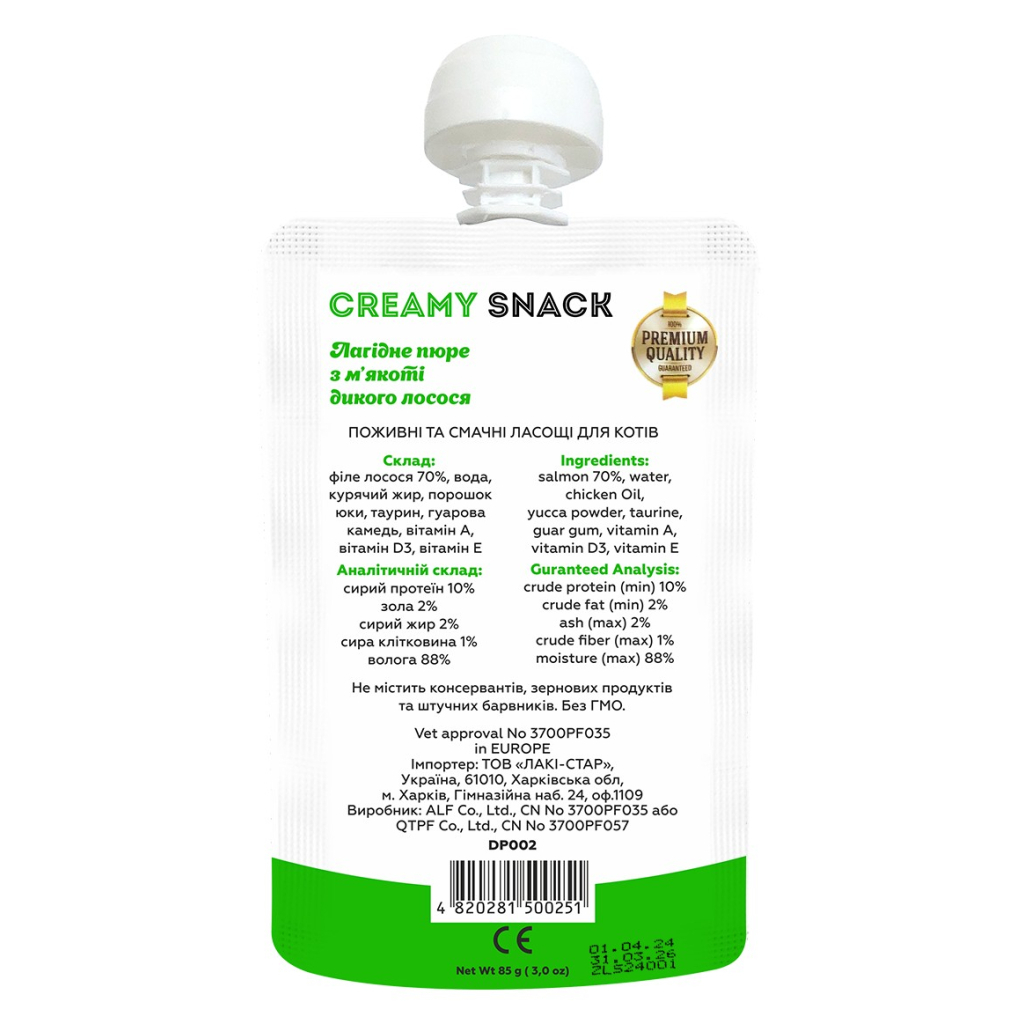 Ласощі для котів Lucky Star Лагідне пюре з м'якоті дикого лосося 85 г (4820281500251)