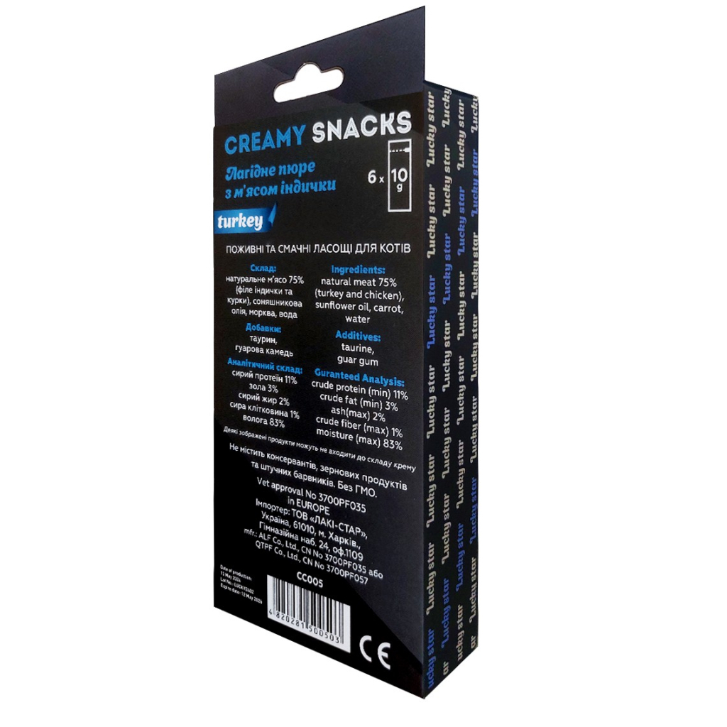 Ласощі для котів Lucky Star Лагідне пюре з м'яса індика у стіках 10 г (4820281500503)