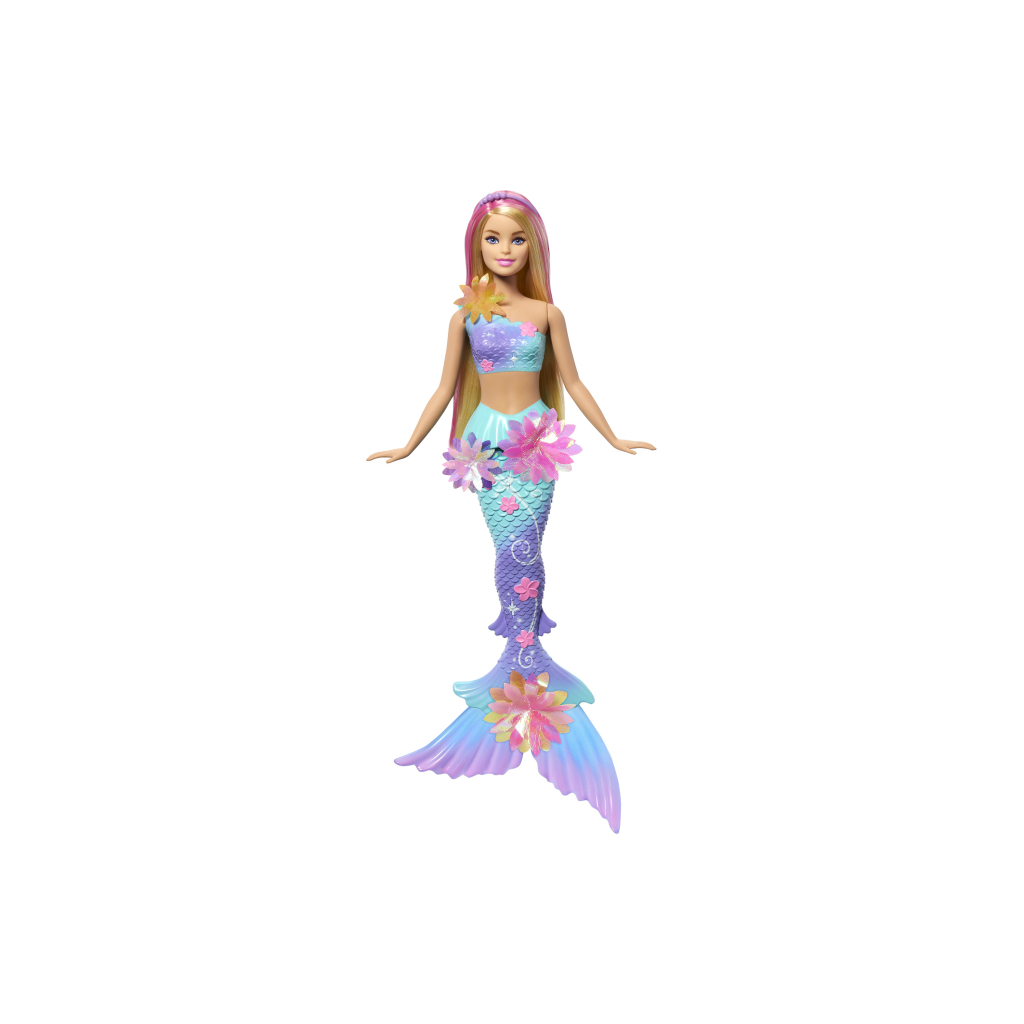 Лялька зачаровує своїм виглядом: хвіст із плавним переходом кольорів, перламутрові квіти, милий обруч із декором, що схожий на перлинки, та довге світле волосся з рожевими пасмами — образ, що нагадує підводний сад мрії.