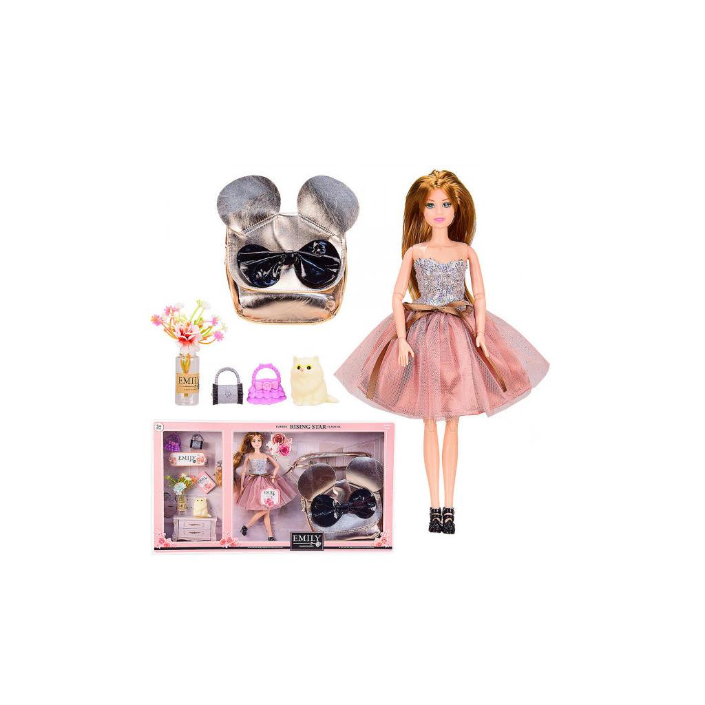 Лялька з сумочкою для дитини, шарнірна Emily - відмінний варіант для того, щоб вашому малюкові було цікаво грати. А вміст комплекту тільки додасть інтересу. Лялька йде розміром 29 см.