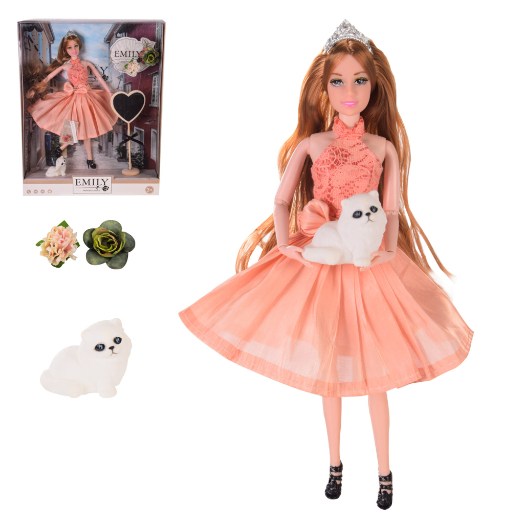 Лялька Emily з аксесуарами. Іграшка сприяє розвитку фантазії у дитини. Виготовлена з якісних матеріалів, іграшку можна використовувати у сюжетних іграх, брати її із собою на прогулянку чи сад.
