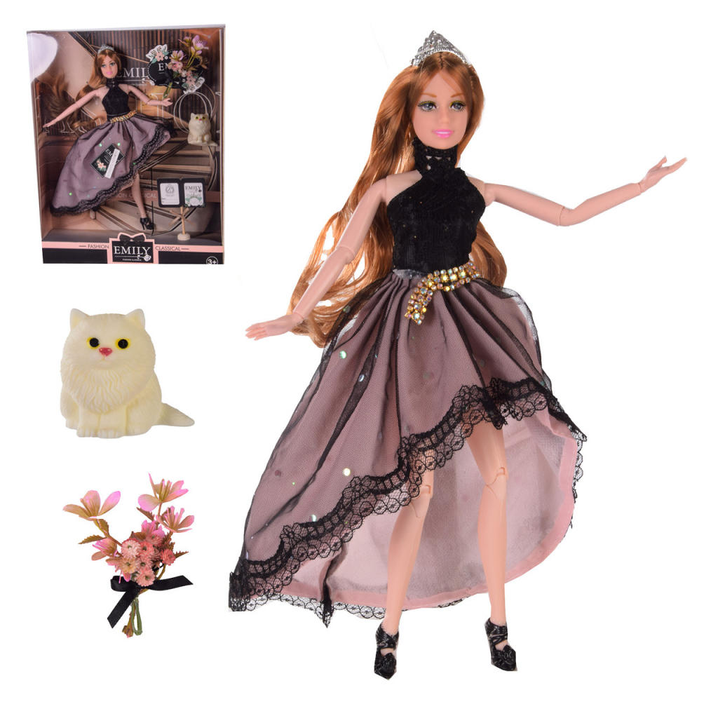 У комплекті: - котик - квіти Упаковка: коробка Стильна лялька, в довгій вечірній сукні підкорить серце будь-якої дівчинки. У лялечки довге волосся та срібна корона на голові. На руках та ногах шарніри. Ігри в ляльки сприяють розвитку дрібної моторики, уяви та комунікативних навичок. Всі деталі набору виготовлені з безпечних матеріалів.