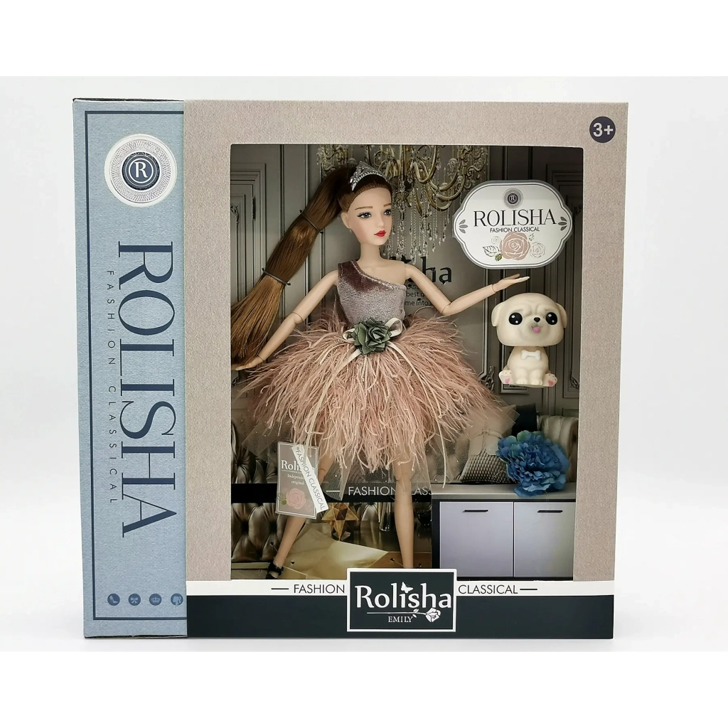 Модна лялька, яка нікого не залишить байдужими, має стильну зачіску та елегантний костюм. Лялька має шарніри в руках та ногах.