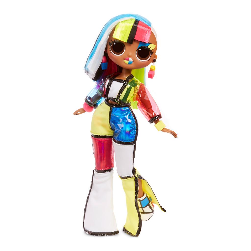 Направте світло ультрафіолетового ліхтарика на ляльку O.M.G. і її одяг, щоб побачити сяючий сюрприз. Коробку можна використовувати в якості вбиральні, а також для зберігання речей і аксесуарів лялечки. Лялька має шарнірні руки, що дає можливість придумувати ще більше цікавих сценаріїв для гри. Підставка для ляльки може бути як підставкою, так і стільчиком.