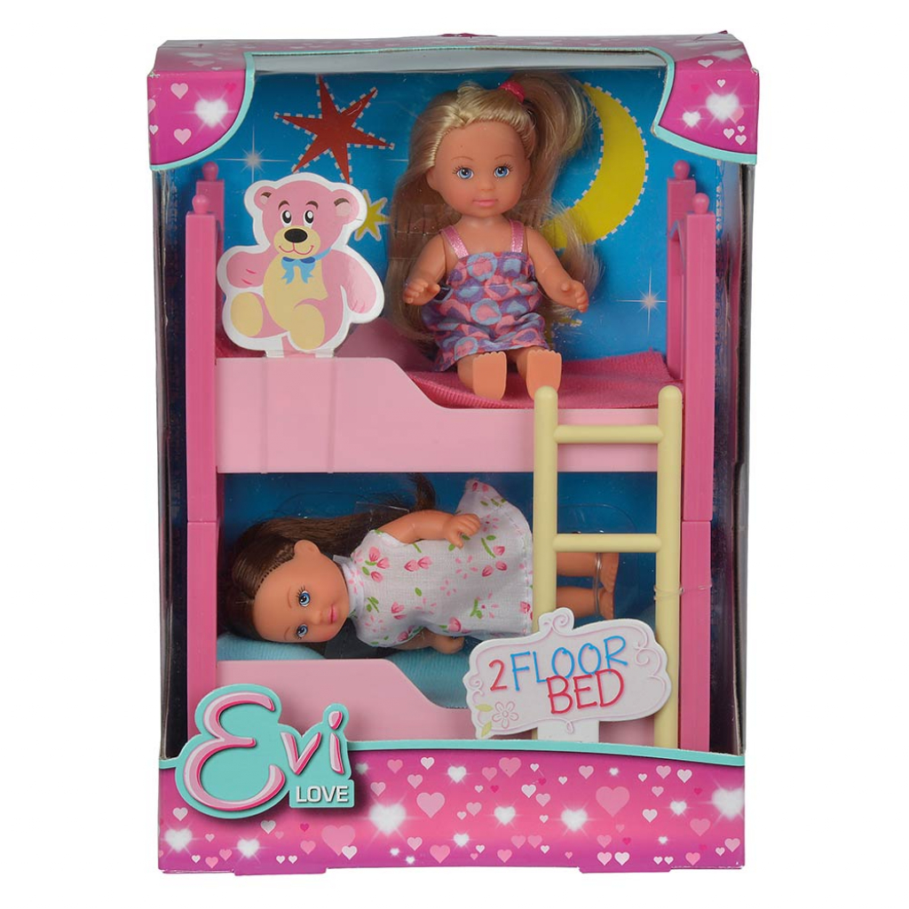 Єва та її подружка люблять ночувати одна у одної. У набір входить 2 ліжечка, які можна скласти, як двох'ярусне ліжко або ж окремо. Також у комплект входять дві ляльки та аксесуари.