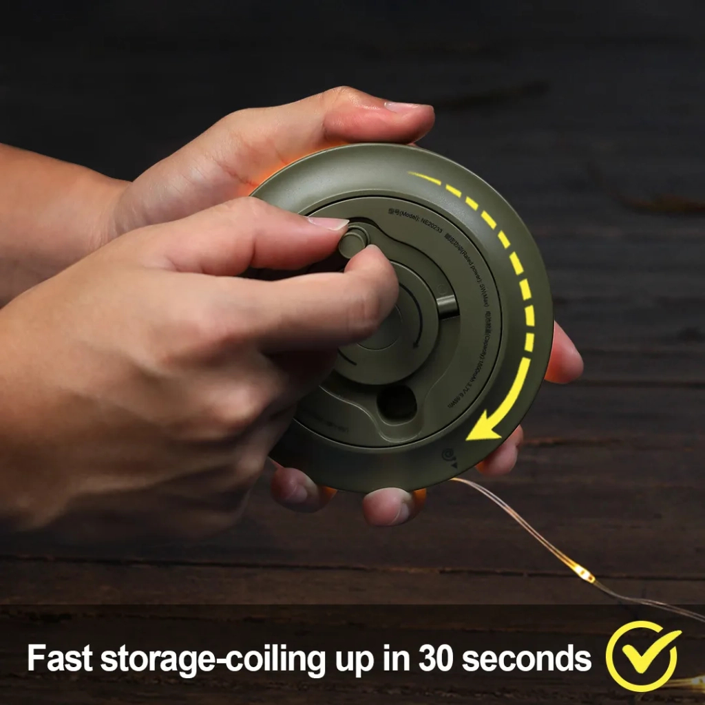 Загальна яскравість основної LED-лампи становить 200 люмен, достатніх, щоб освітлити ваш табір чи житло на відстані до 10 метрів. Водночас, вбудована багаторежимна гірлянда завдовжки 10 метрів додає можливість перетворити будь-який простір у магічне місце для відпочинку і релаксації. Її конструкція передбачає зручне і швидке складання завдяки запатентованій ручній рукоятці, що економить час та простір для зберігання.