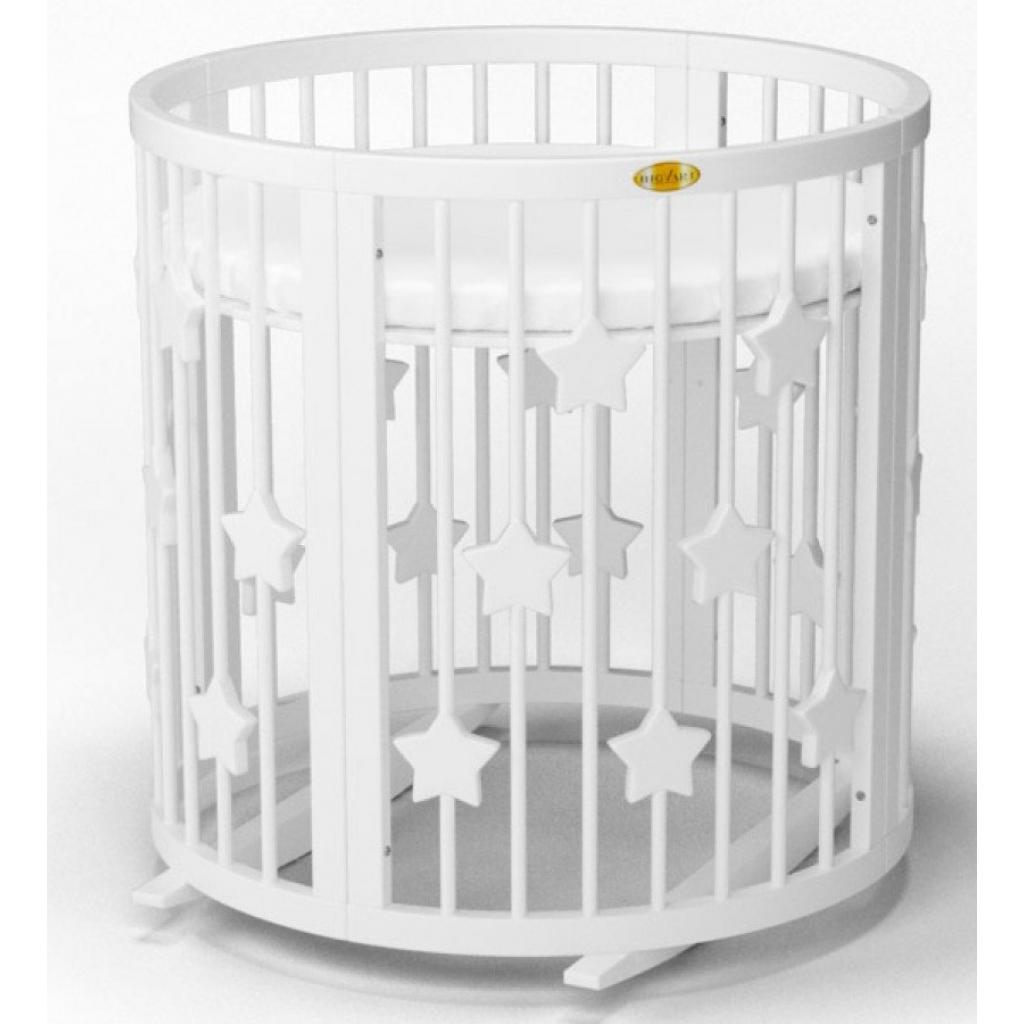 Овальне ліжечко-трансформер з зірочками легко трансформується в 11 потрібних і важливих предметів меблів: