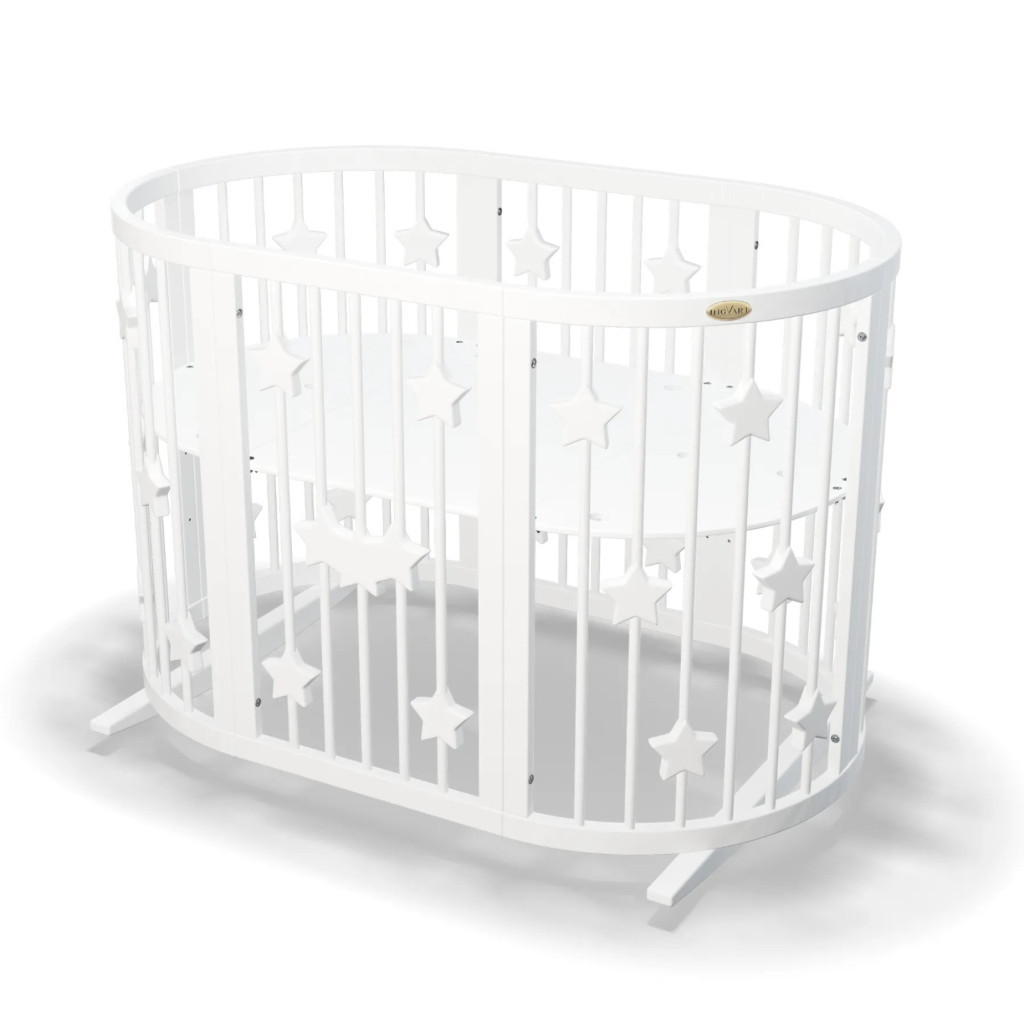 Овальне ліжечко - трансформер SMART BED із зірочками поєднує 11 предметів меблів в 1 упаковці і 9 трансформацій ліжечка !