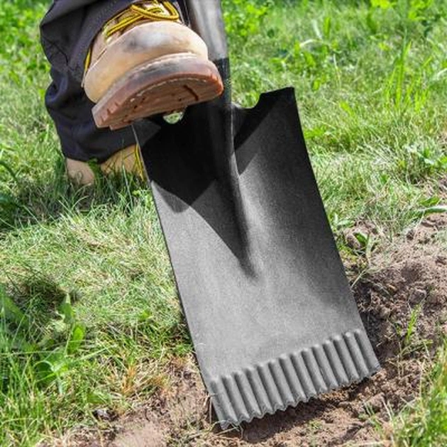 Робоча частина виконана з високоякісної загартованої сталі, пряма, зі спеціальною зубчастими краями, легко проникає в кам'янистий грунт або через щільну кореневу систему.
