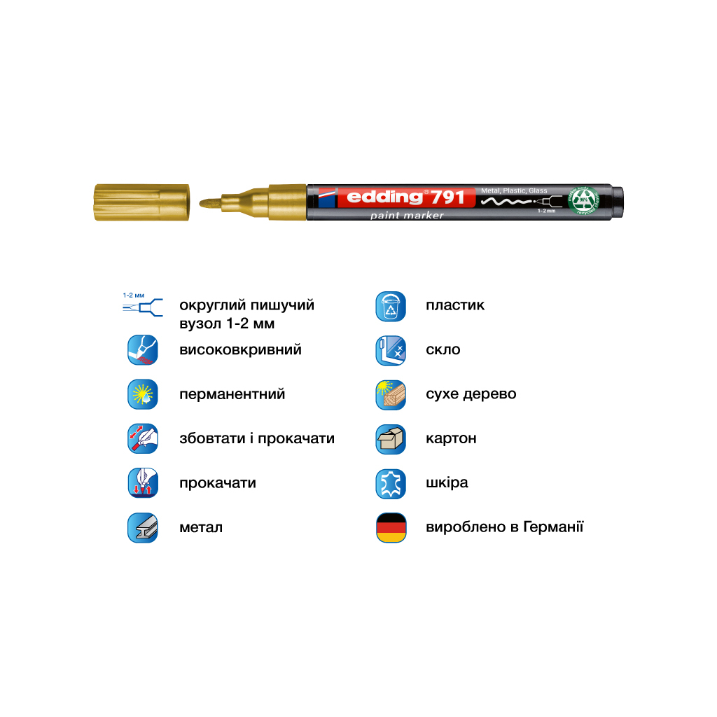 Маркер Edding Paint e-791 1-2 мм круглий золотий (e-791/53n)