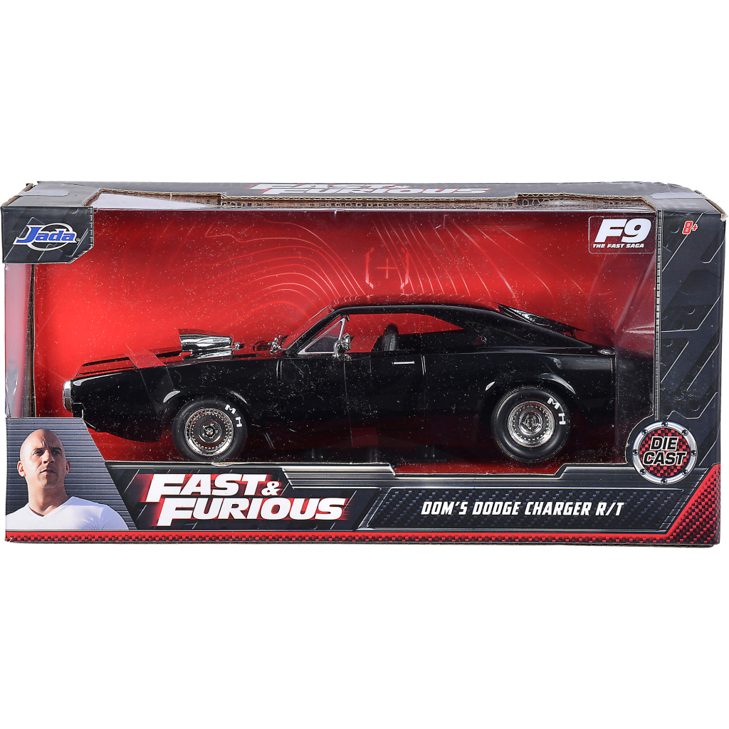 Компанія Jada представляє металевий ліцензійний автомобіль "Додж Чарджер", який повністю повторює дизайн справжнього ретроспорткара з фільму "Форсаж 9". Це справжній звір для вуличних перегонів, який належить одному з головних героїв — Домініку Торетто. Корпус машини виготовлений за технологією Die-Cast (лиття під тиском). Він має деталізований кузов: прозорі фари та скло, зовнішні дзеркала заднього огляду та інше. Додж завжди готовий до непередбачуваних перегонів завдяки зовнішній турбіні нагнітання повітря. Зазирнути всередину автомобіля й розглянути салон тобі дадуть змогу відкривні бокові дверцята й багажник. Прогумовані колеса автомобіля на сріблястих дисках мають механізм вільного ходу.
