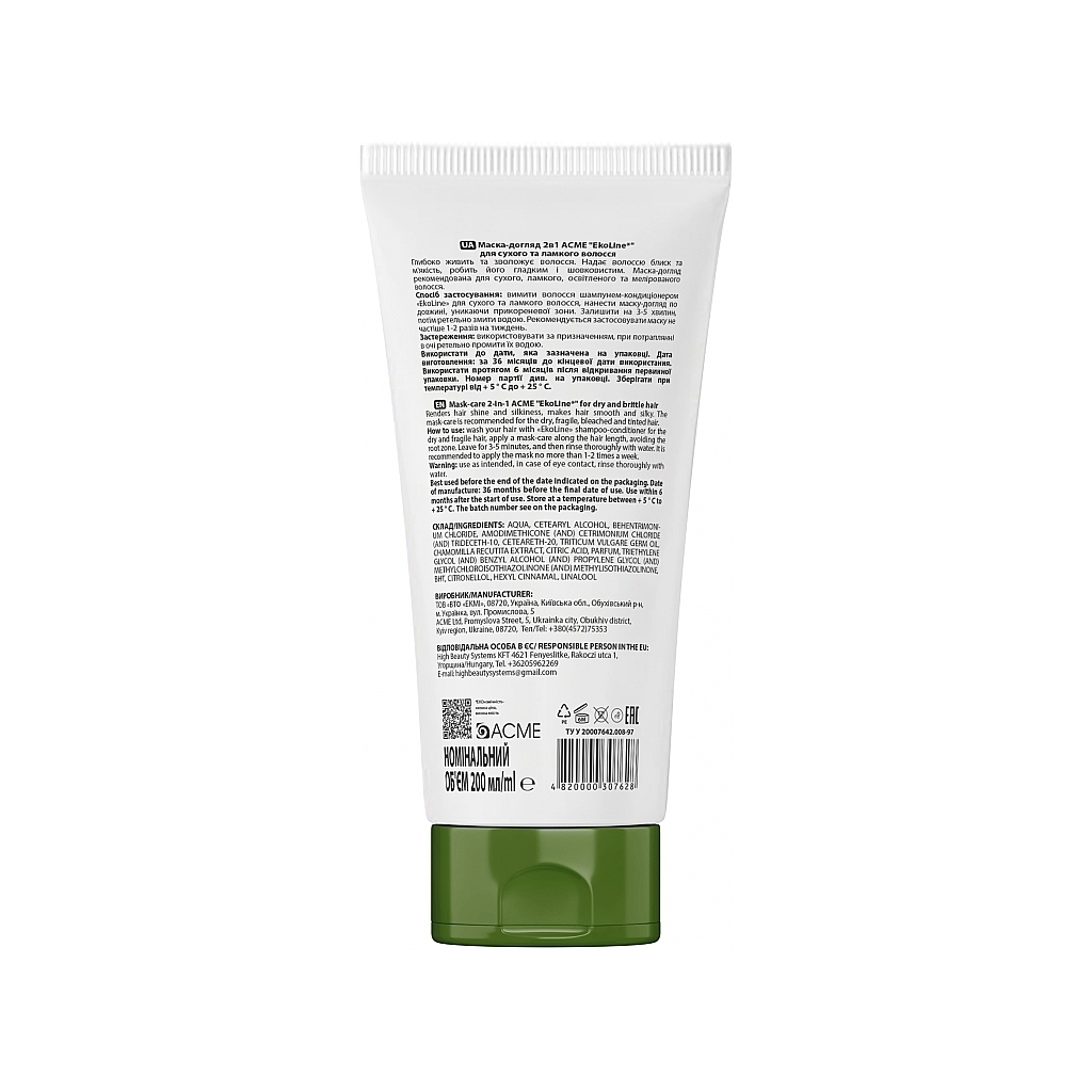 Маска для волосся Acme Color EkoLine Догляд 2в1 Для сухого та ламкого волосся 200 мл (4820000307628)