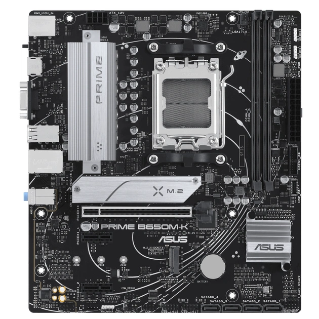 Asus PRIME B650M-K — це високоякісна материнська плата форм-фактора Micro-ATX, розроблена для надійної роботи з процесорами AMD Ryzen серій 7000, 8000 та 9000. Вона пропонує сучасне рішення для тих, хто прагне поєднати потужність, зручність і продуктивність у своїх робочих або ігрових ПК.