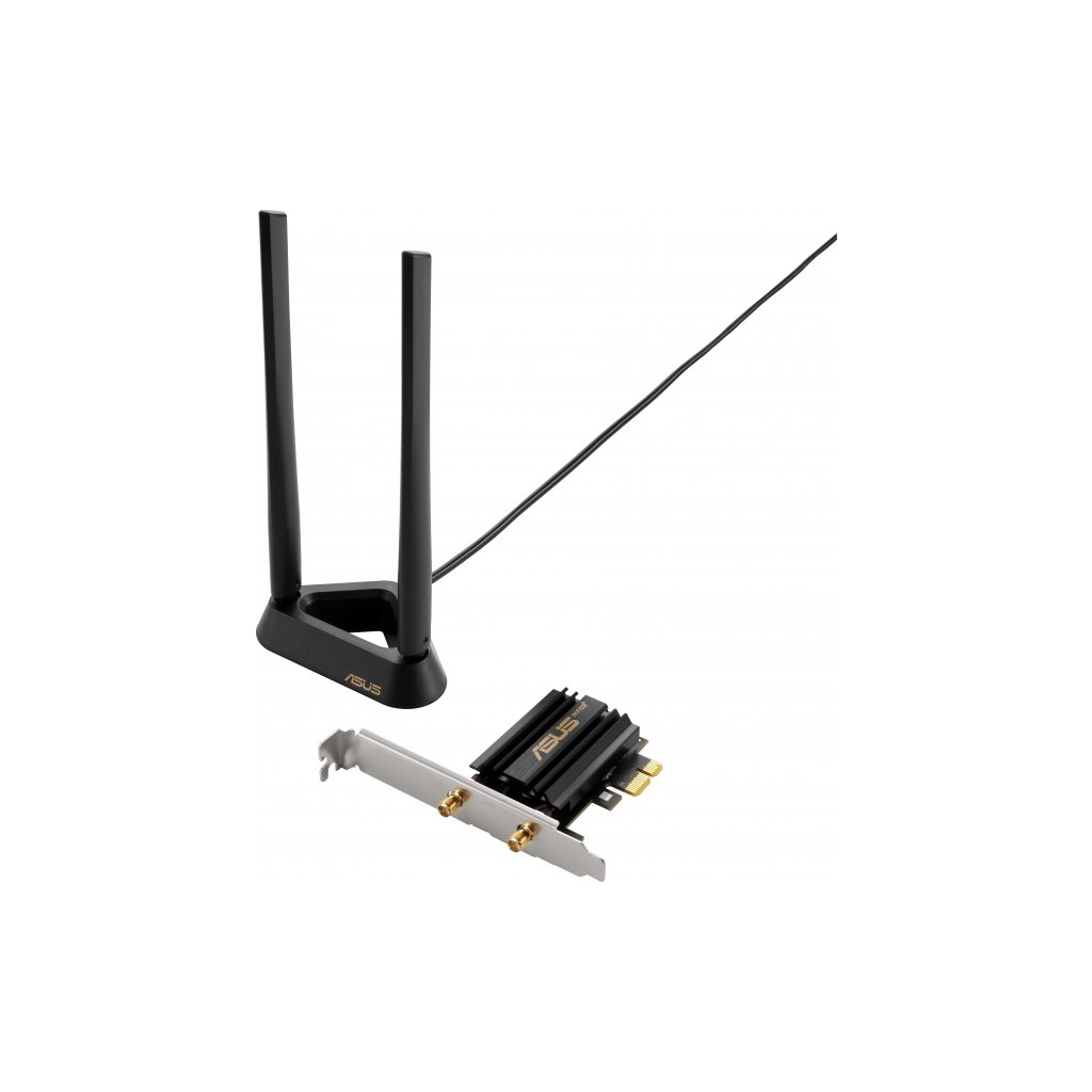 Адаптер Wi-Fi 6 формату PCI-E з двома зовнішніми антенами та магнітною основою — це високоефективне рішення компанії ASUS Wi-Fi 6 з багатим функціоналом.