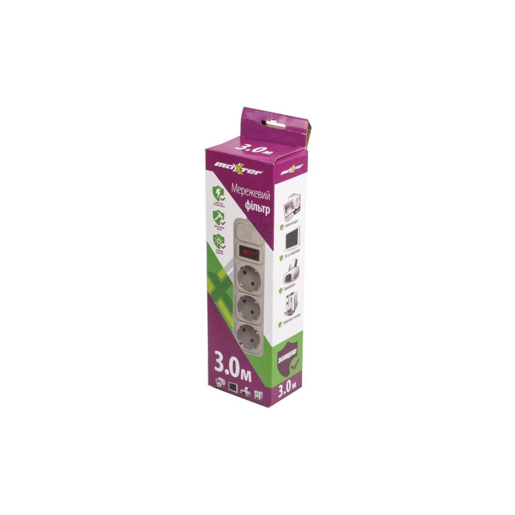 Мережевий фільтр живлення Maxxter SPM3-G-10G сірий 3 м кабель, 3 розетки (SPM3-G-10G) захистить комп'ютерна та офісну техніку від перешкод, перевантажень і короткого замикання. Корпус виконаний з ударостійкого пластику і має мережевий кабель і вилку євростандарту, а також 3 універсальних розетки c заземленням (Euro / Rus). На фільтр і встановлено світлодіодний вимикач і є отвір для кріплення до стіни. Фільтр гарантує миттєву реакцію на коротке замикання і перевищення максимально допустиме потужності.