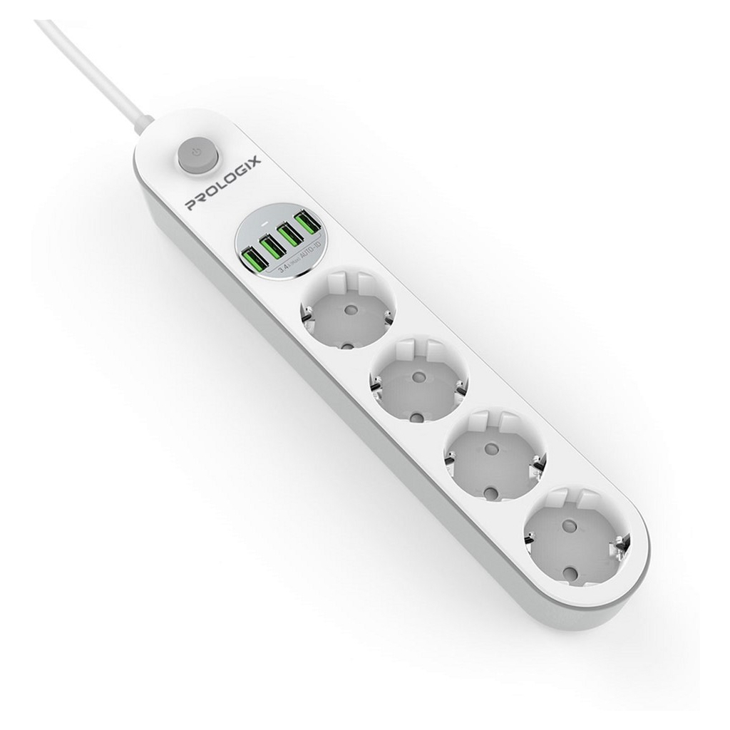 Бренд ProLogix пропонує мережевий фільтр PR-SE4432W. Він має 4 розетки та 4 порти USB. Виконаний у корпусі з вогнетривкого пластику, захищений від перевантажень та коротких замикань. Також пристрій оснащений спеціальним отвором, що дозволяє повісити його на стіні.