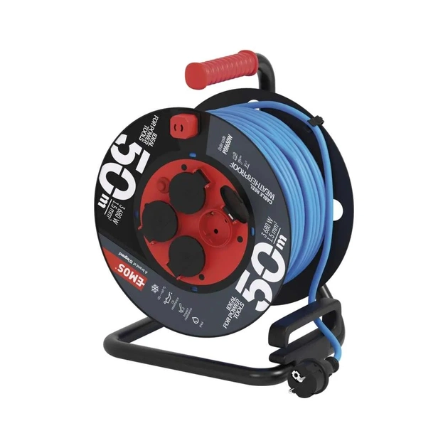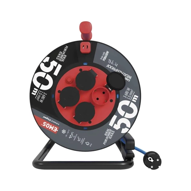Універсальний погодостійкий подовжувач на котушці Emos P08650W призначений для використання в різних погодних умовах, так як має ступінь захисту IP44, що означає, що він захищений від бризок води і твердих тіл розміром більше 1 мм.