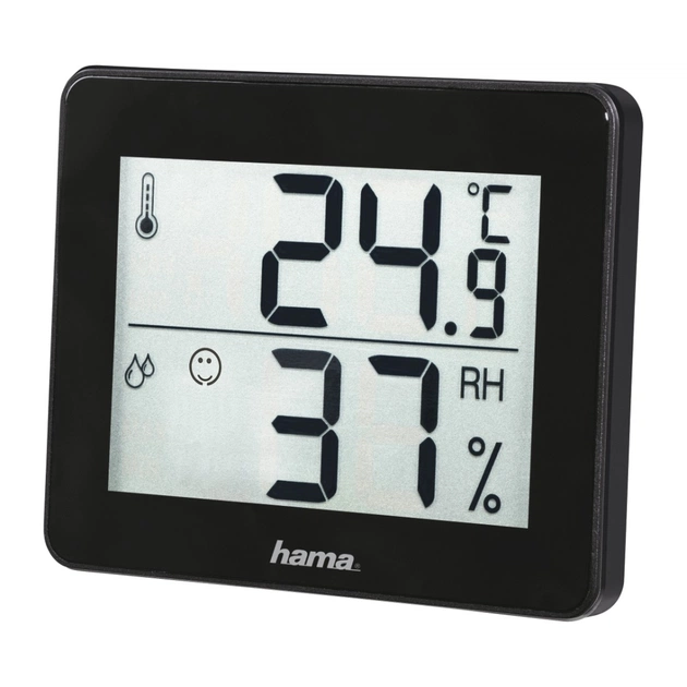 Термометр-гігрометр портативний прилад, призначений для вимірювання температури і вологості повітря усередині приміщення. Hama TH-130 це простий в експлуатації і надійний прилад, який ідеально підійде для вимірювання вологості в офісі, дитячій кімнаті і теплиці. Значки у вигляді смайликів допомагають вам класифікувати значення показників.