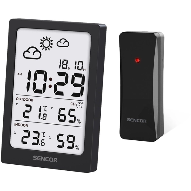 Чи часто вас застає зненацька несподівана погода? З метеостанцією SENCOR SWS 2300 цього не станеться. Просто розмістіть або встановіть станцію в зручному місці в приміщенні та вставте 2 батарейки типу AAA. Зовнішній датчик, призначений для використання в саду або на балконі, є бездротовим і потребує 2 батарейок типу AAA. Ви можете розмістити його на відстані до 80 метрів від станції. Після кількох хвилин збору інформації датчик надсилає дані в режимі реального часу на станцію, відображаючи 12–24-годинний прогноз погоди з значками.