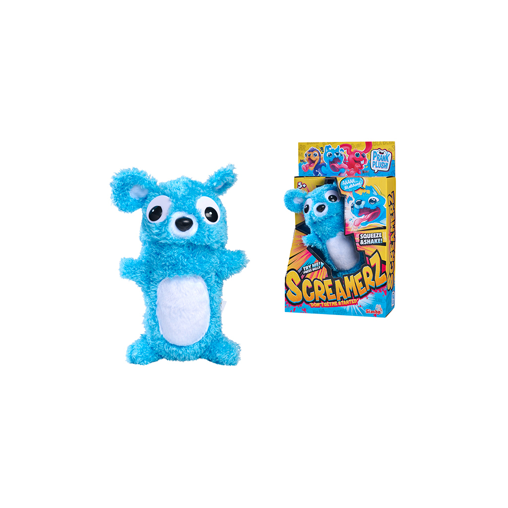 Своїм кумедним виглядом і привабливою чарівністю ведмедик Скрімерз дарує гарний настрій дітям і дорослим. Його блакитне пухнасте хутро, відстовбурчені вуха та божевільні великі очі — це лише початок, адже коли ведмедика стискають, починаються справді веселощі! Натиснувши на живіт, його рот відкривається і він видає короткий оригінальний крик, якщо натиснути трішки сильніше, починається гучний крик. А коли ведмежа стиснути і потрясти одночасно, він видасть смішний, хиткий крик!