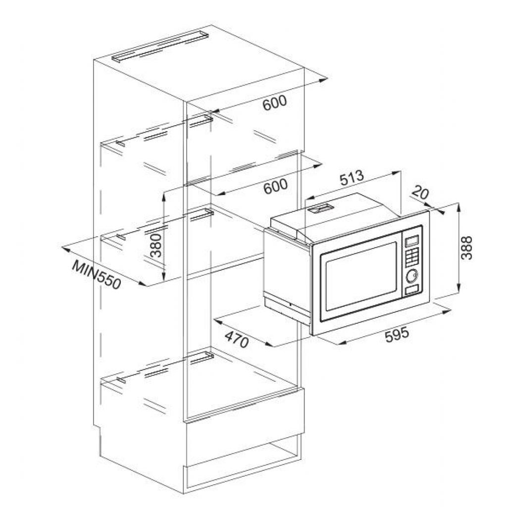 Електронне управління за допомогою поворотного перемикача і клавіш. 8 функцій. Електронний дисплей для індикації часу приготування і поточного часу. Електронний пристрій програмування на 95 хвилин. Сигнал закінчення процесу приготування. Електронний термостат. Тангенціальна охолоджуюча вентиляція. 2 режим роботи гриля (незалежний і комбінований). 1 внутрішня лампа. Обертається скляна тарілка Ø 315 мм і решітка в комплекті. Внутрішня поверхня шафи з нержавіючої сталі. Блокування від дітей. Внутрішній об'єм 25 літрів.