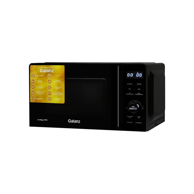 Мікрохвильова піч Galanz MW-4202BG — це втілення інноваційних рішень та стилю, що ідеально підходить для сучасної кухні. Її вишуканий чорний дизайн надає елегантності і підкреслює вашу прихильність до деталей, створюючи гармонію з будь-яким інтер'єром.