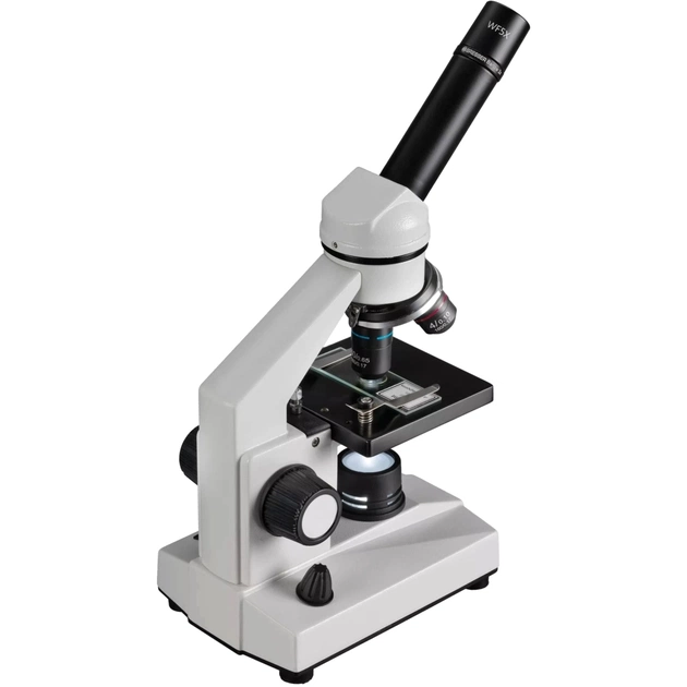 Дана модель поставляється з широким набором аксесуарів, об'єктивів і окулярів, необхідних для старту спостережень, що дає можливість відразу зануритися в такий цікавий мікросвіт. Зручний та легкий пластиковий кейс призначений для зберігання та транспортування мікроскопа та аксесуарів та приладдя.
