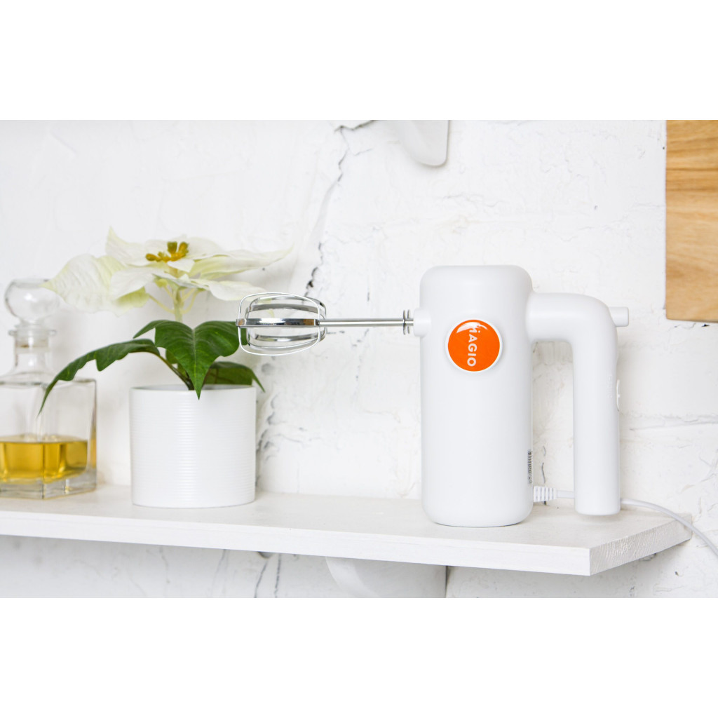 Потужність 200 Вт забезпечує швидке та якісне збивання. Міксер не потребує багато місця для зберігання завдяки своїй компактній формі.