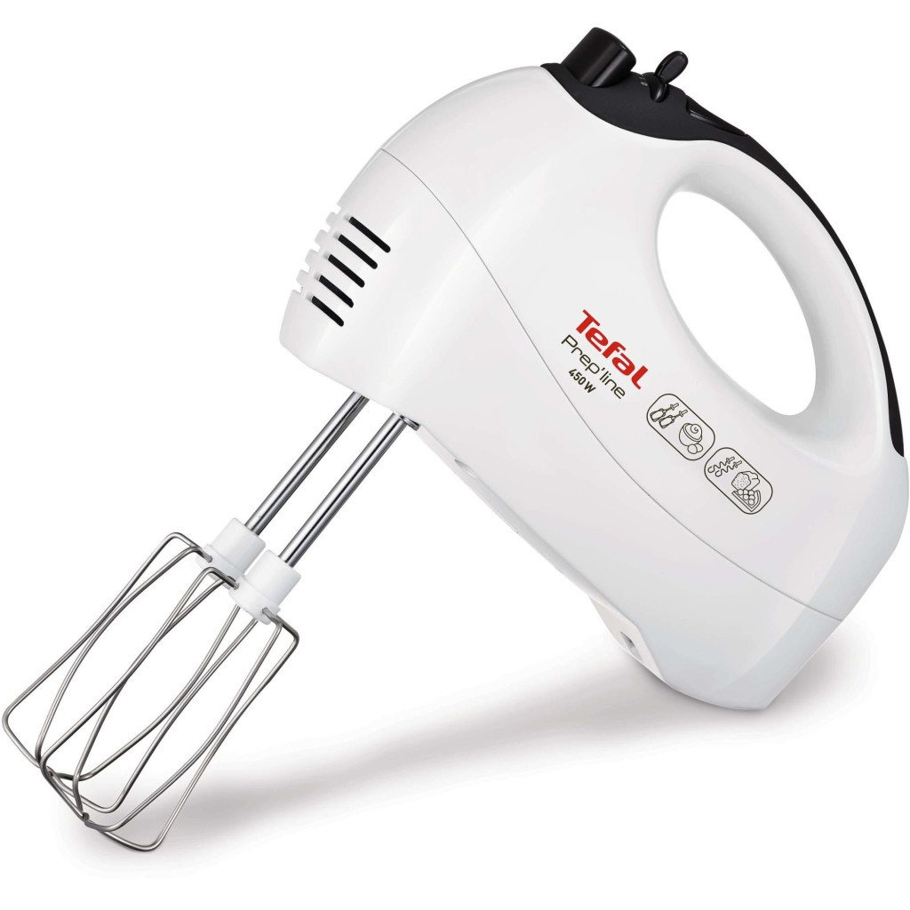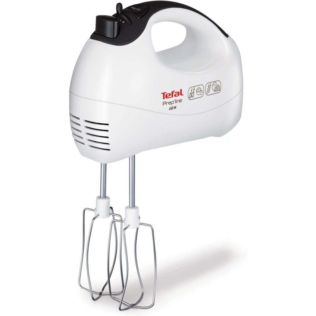 Робота. Ручний прилад Tefal HT411138 дозволяє вибрати одну з п'яти швидкостей. Турборежим допоможе за максимально короткий час підготувати тісто для випічки або смаження. Ергономічна ручка дозволяє з комфортом використовувати агрегат. Кнопкова панель управління знаходиться зверху рукоятки, тобто, управляти міксером можна однією рукою. Кнопка від'єднання насадок допоможе швидко поміняти насадки. На клавішах і повзункового перемикачі швидкостей є позначення дії. Тому управляти міксером зможе кожен.