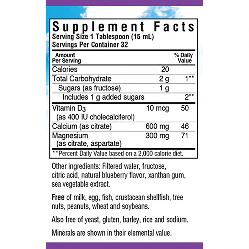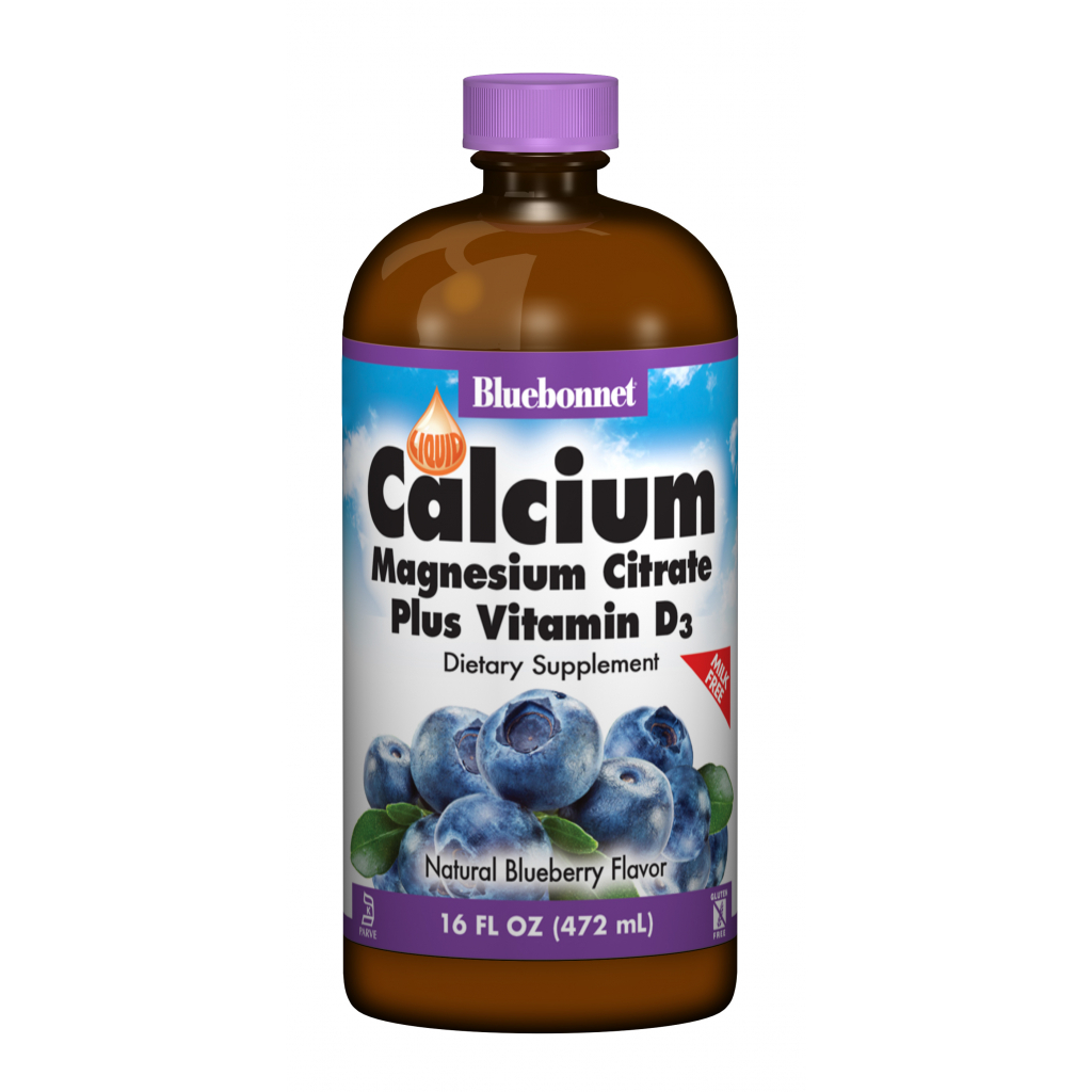 Мінерали Bluebonnet Nutrition Рідкий Кальцій Цитрат Магнію + Вітамін D3, Смак Чорниці, (BLB-00686)