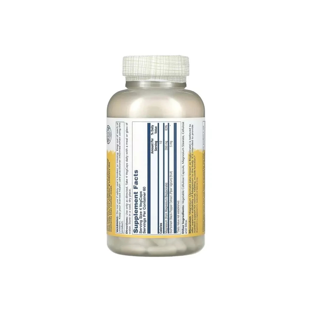 Мінерали Solaray Магній Гліцинат високої засвоюваності, 350 мг, High Absorption M (SOR-89504)