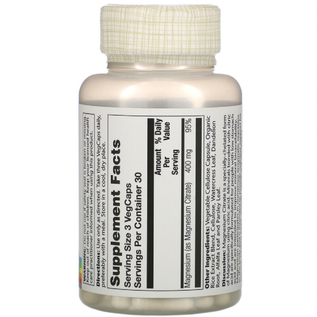 Мінерали Solaray Цитрат Магнію, 400 мг, 90 капсул (SOR-46301)
