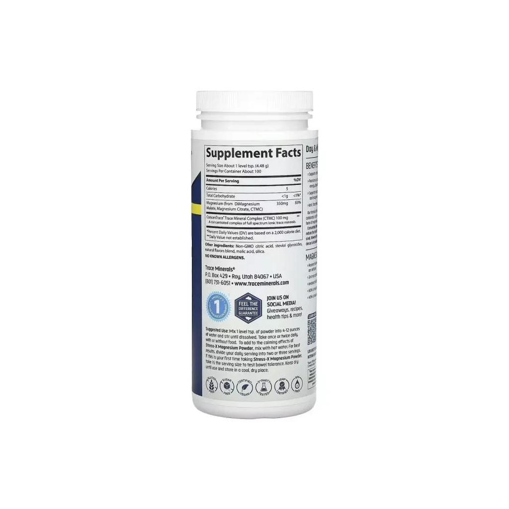 Мінерали Trace Minerals Магній, смак лимон-лайм, 350мг, Stress-X, Magnesium Powder, 448 гр (TMR-00229)