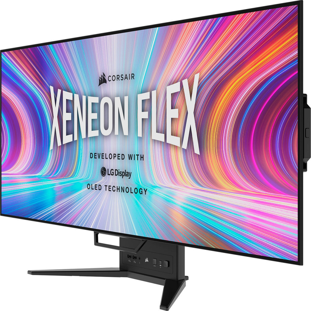 Перший у світі гнучкий ігровий монітор Corsair Xeneon Flex 45WQHD240 зі співвідношенням сторін 21:9, його можна легко перетворити з плоского ультраширокого екрана на екран із вигином 800R з повним ефектом занурення, завдяки чому завжди можна використовувати монітор із необхідними параметрами.
