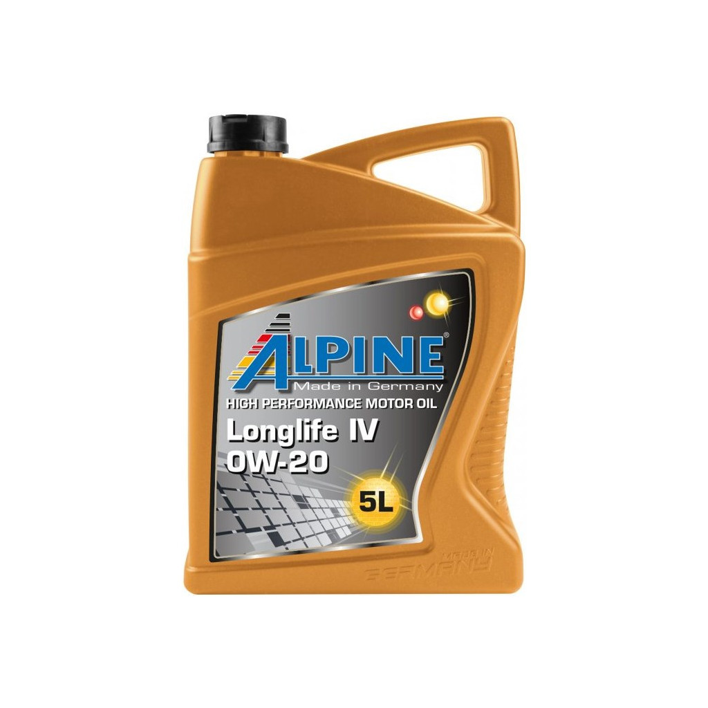 Моторна олива Alpine 0W-20 Longlife IV 5л (1460-5) - Синтетичне масло, розроблене спеціально для новітніх двигунів автомобілів концерну VAG, що вимагають від масла відповідності фірмовим специфікаціям VW 508 00/509 00. Масло вироблено з урахуванням всіх конструктивних особливостей даних двигунів і володіє оптимальними значеннями в'язкості і плинності для найкращого захисту двигуна від зносу і забезпечення максимальної продуктивності при мінімальній витраті палива.