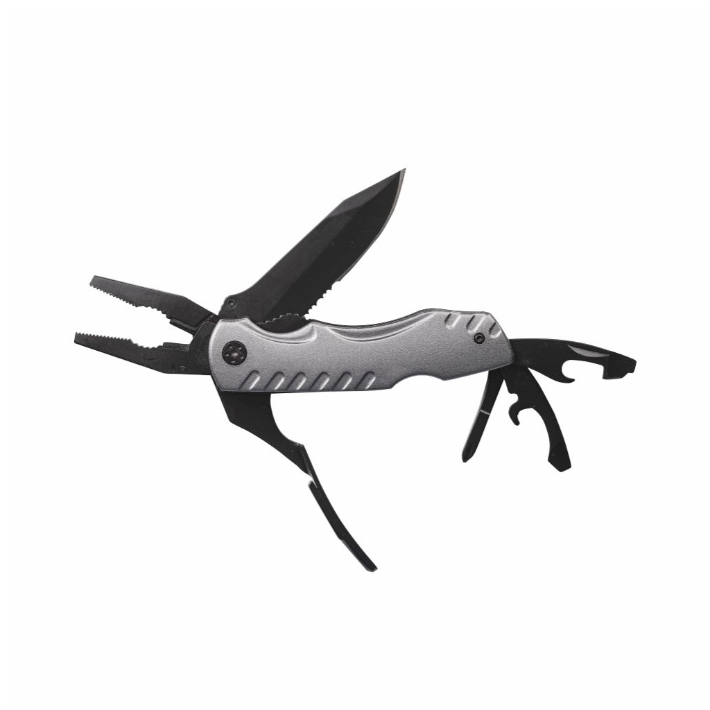 Висока якість виготовлення і стійкість до зносу забезпечуються завдяки використанню високоякісної нержавіючої сталі. Це гарантує довговічність інструменту та його корозійну стійкість, що дозволяє йому зберігати свої властивості навіть у найсуворіших умовах. Стилізоване графітове покриття не тільки забезпечує чудовий зовнішній вигляд, але й приваблює своєю елегантністю та витонченістю, легко поєднуючи мультитул з іншими аксесуарами.