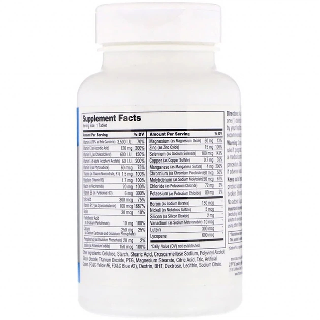 У комплекс Мультівітаміни і Мультімінерали для Чоловіків 50+, 21st Century, входять основні поживні речовини, які необхідні для здоров'я чоловіків. Багатий склад цього продукту включає в себе: вітаміни групи B для енергетичного обміну; магній для здоров'я серця; кальцій, цинк і вітамін D3 для підтримки кісткової системи; біотин для волосся, нігтів і шкіри; йод для нормальної роботи щитоподібної залози, а також багато інших компонентів необхідні для щоденної підтримки всіх систем організму чоловіків віком 50+.