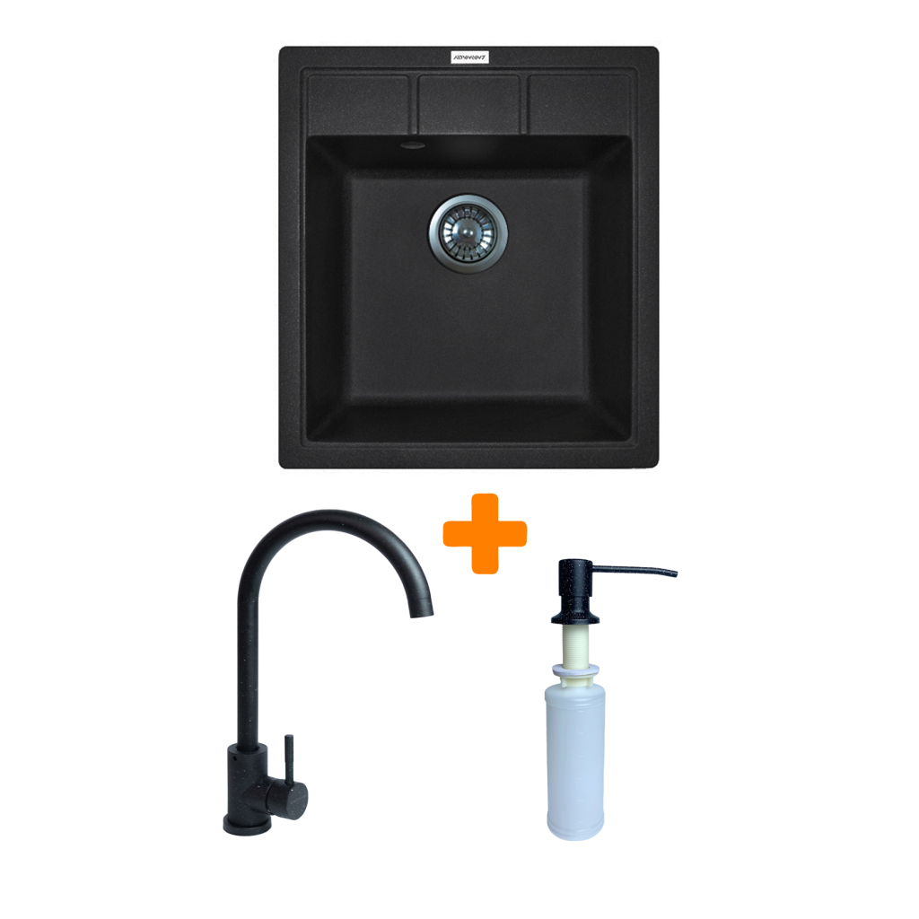 Мийка кухонна Adamant Brick чорний + змішувач та дозатор (4824296209703)