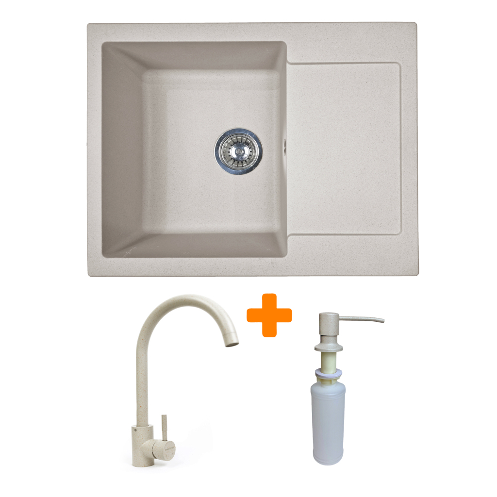 Набір Adamant Minimal поєднує врізну мийку зі штучного каменю з крилом, змішувачем і дозатором, утворюючи комплексне рішення для кухні. Прямокутна форма та продумана глибина чаші забезпечують зручність під час миття посуду та приготування продуктів. Матеріал Solid Surface стійкий до подряпин, впливу температур і барвників. Крило додає додаткового місця для сушіння та роботи.