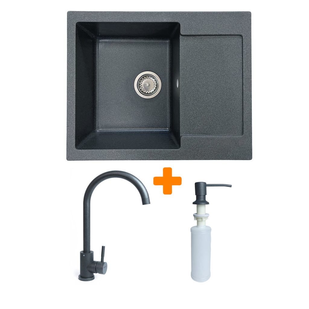 Мийка кухонна Adamant Minimal графіт + змішувач + дозатор (1824296902313)