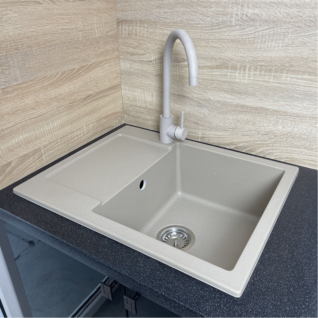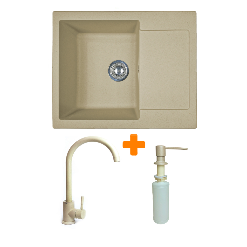 Набір Adamant Minimal поєднує врізну мийку зі штучного каменю з крилом, змішувачем і дозатором, утворюючи комплексне рішення для кухні. Прямокутна форма та продумана глибина чаші забезпечують зручність під час миття посуду та приготування продуктів. Матеріал Solid Surface стійкий до подряпин, впливу температур і барвників. Крило додає додаткового місця для сушіння та роботи.