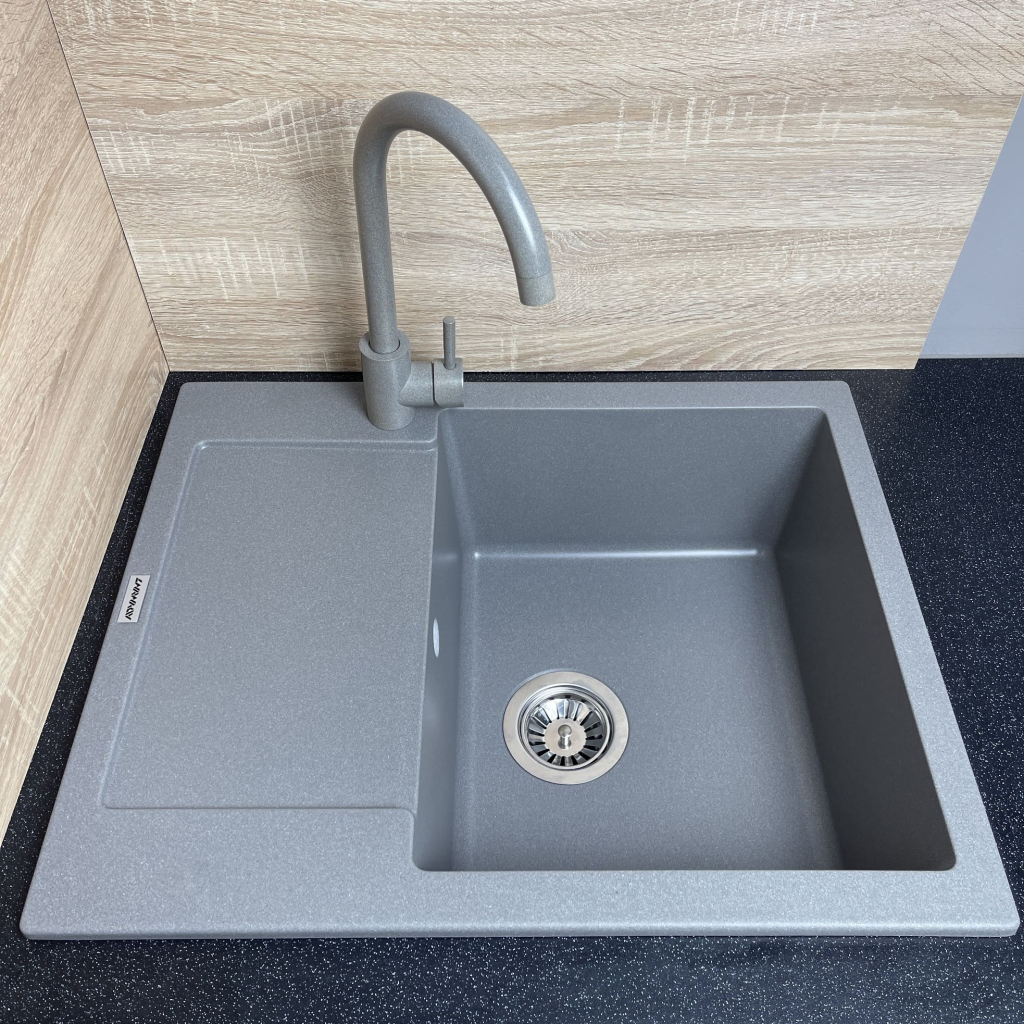 Мийка кухонна Adamant Minimal сірий + змішувач + дозатор (1824296902304)