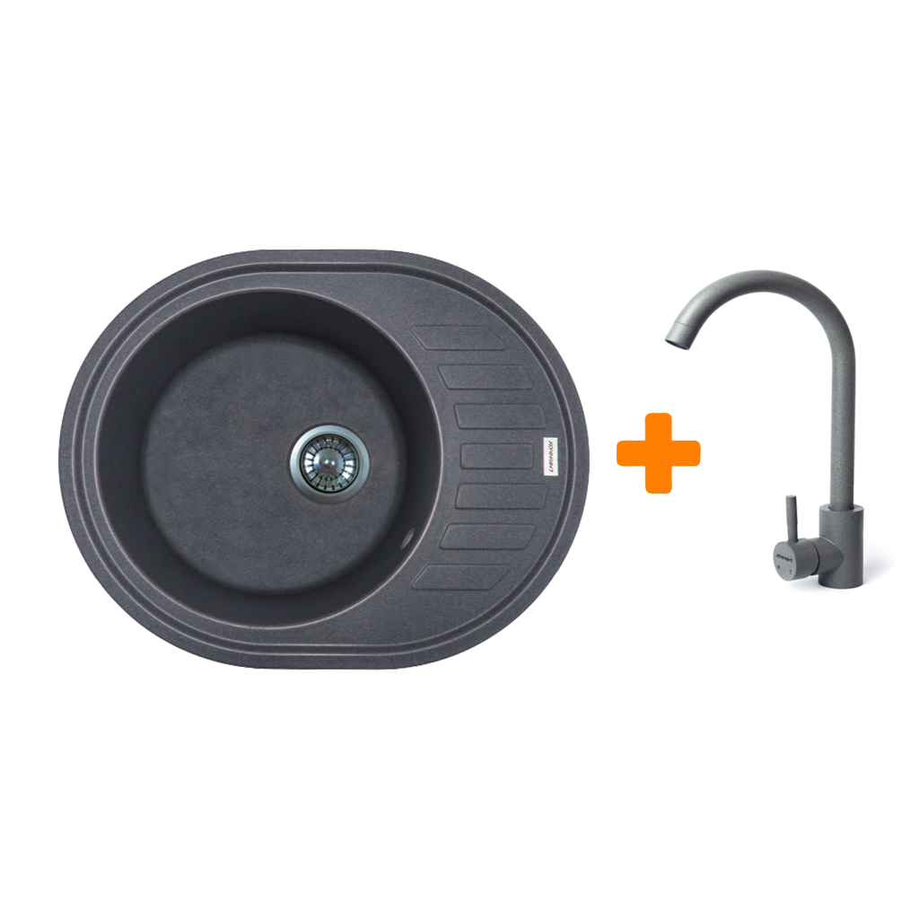 Мийка кухонна Adamant Ovum сірий + змішувач (1824296910404)