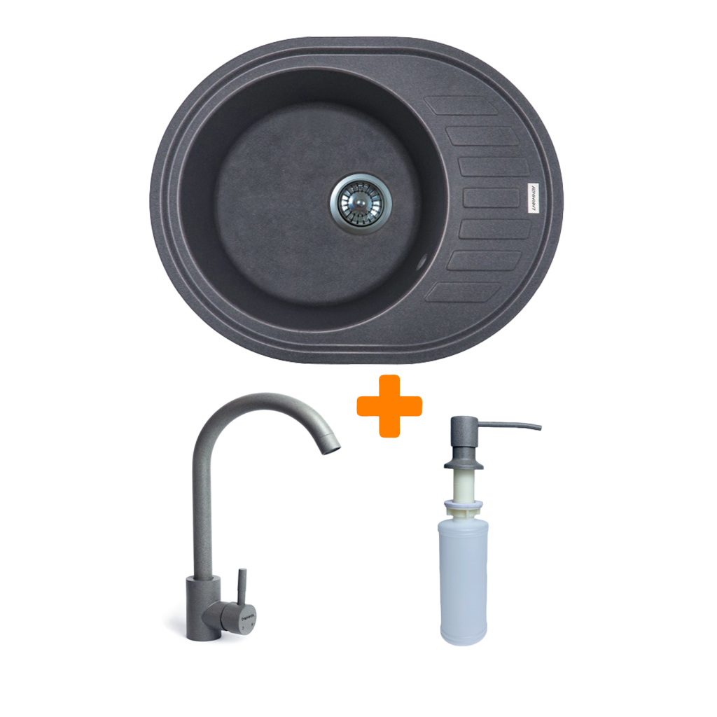 Мийка кухонна Adamant Ovum сірий + змішувач + дозатор (1824296900404)