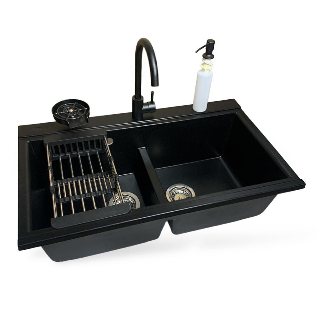 Мийка кухонна Adamant Similar антрацит + змішувач + дозатор + ополіскувач склянок + кол (4824296106515)