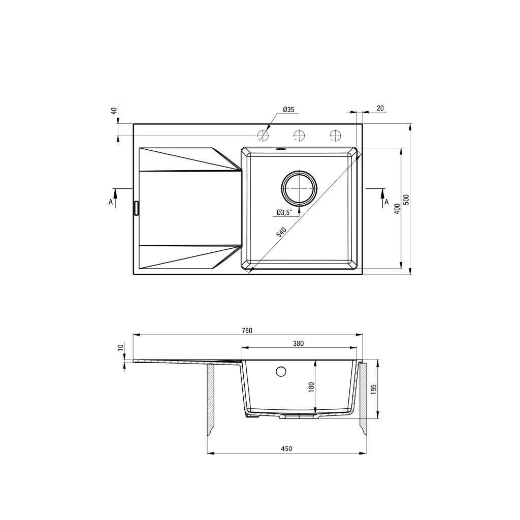 - Довжина мийки, см