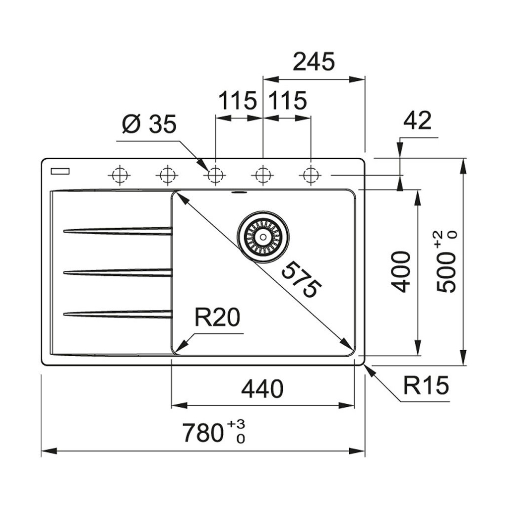 - Отвір під змішувач